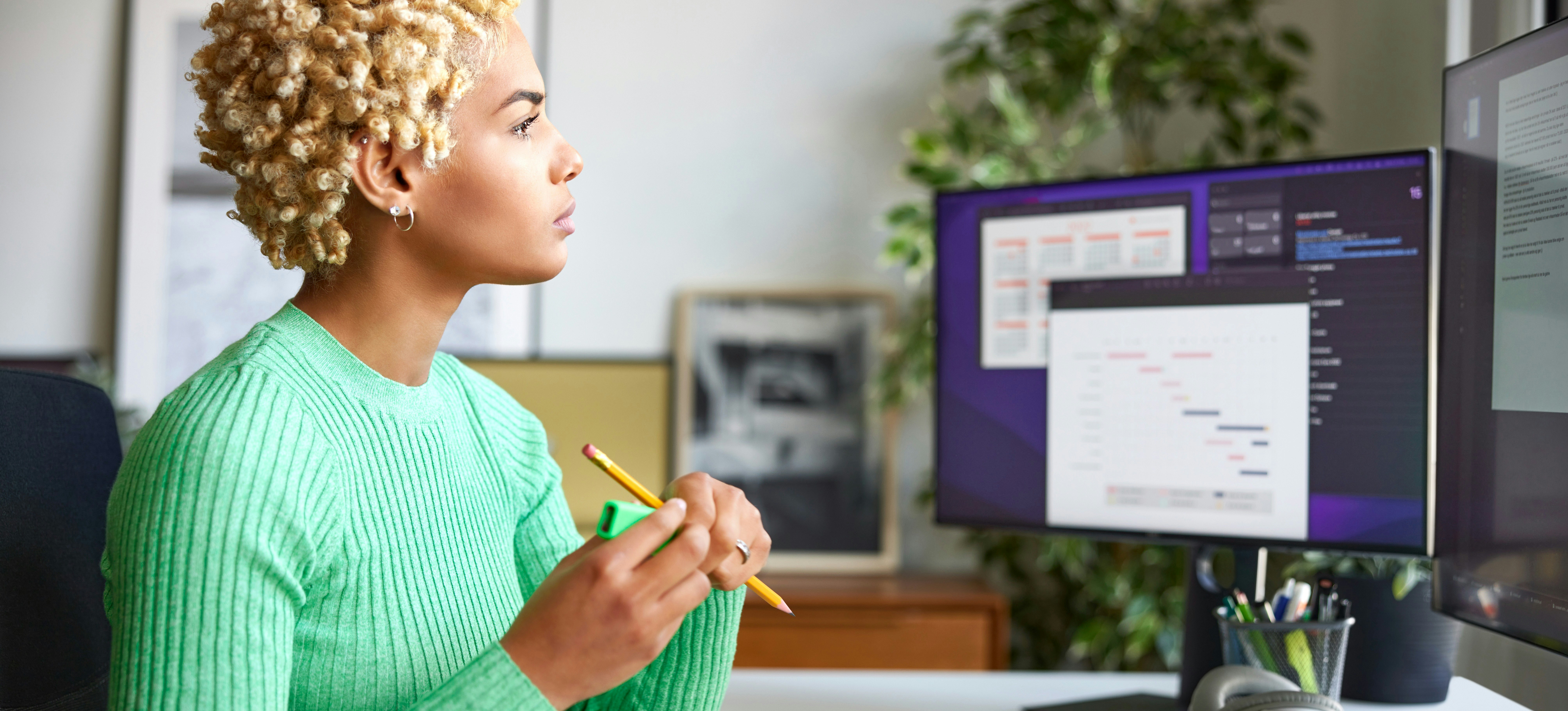 [Featured image] A confident professional wearing a green sweater is working in their home office and calculating how many work weeks are in a year.