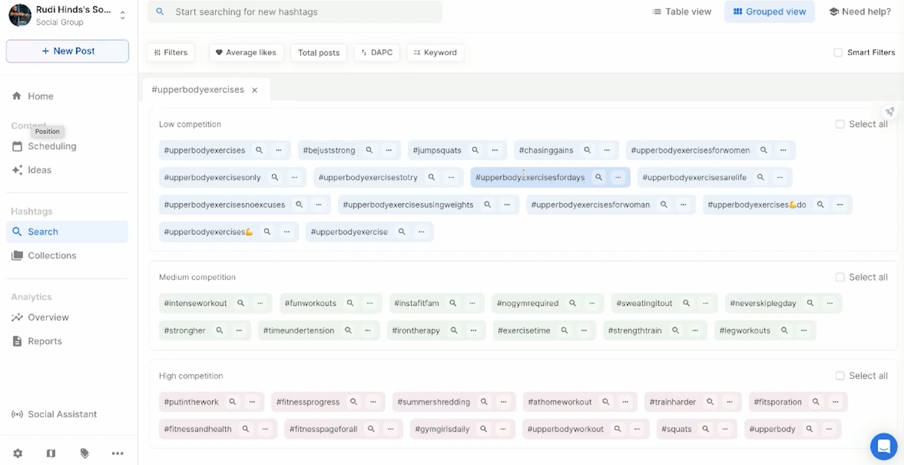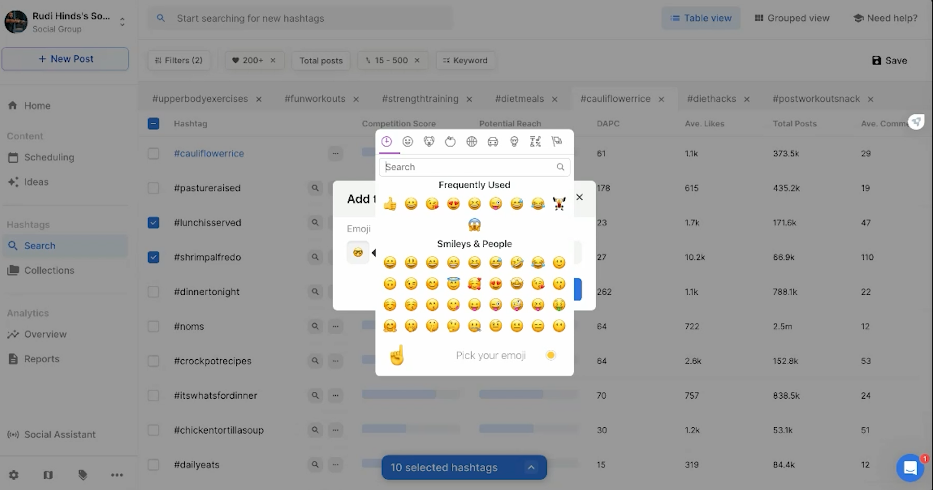 Efficiently organize and manage hashtags into thematic collections and using Flick's scheduling tool to plan and create strategic social media posts