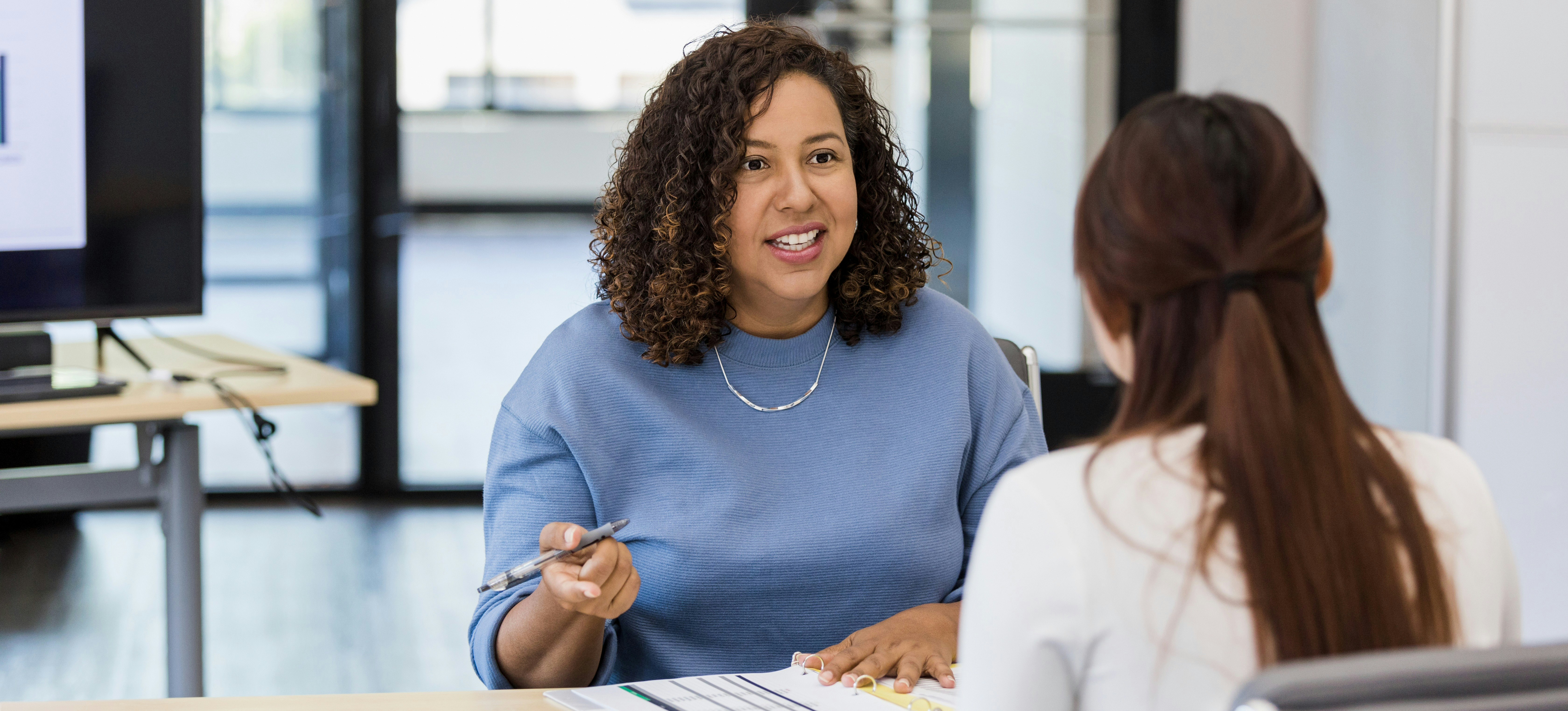[Image en vedette] Un responsable des ressources humaines s'assoit avec un employé et procède à une analyse des compétences manquantes.