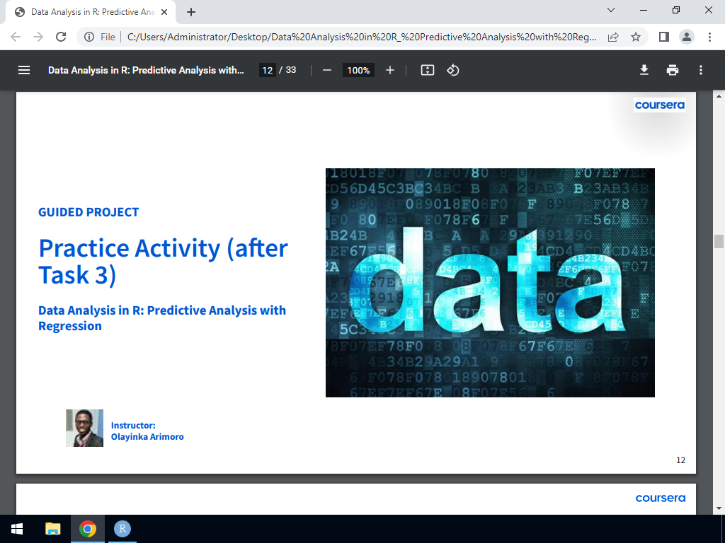 I enjoyed taking this guide project. It offered a introduction into linear regression models in R. I found the project to be engaging and very informational!