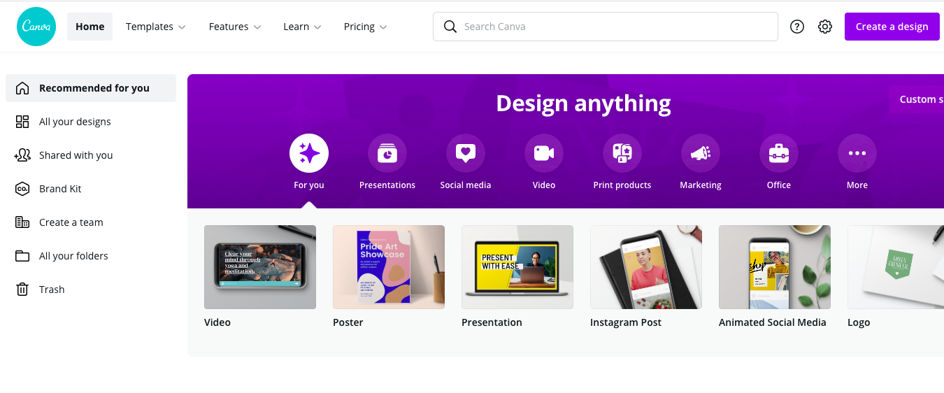 Create a Canva account and familiarize yourself with the navigation pane.