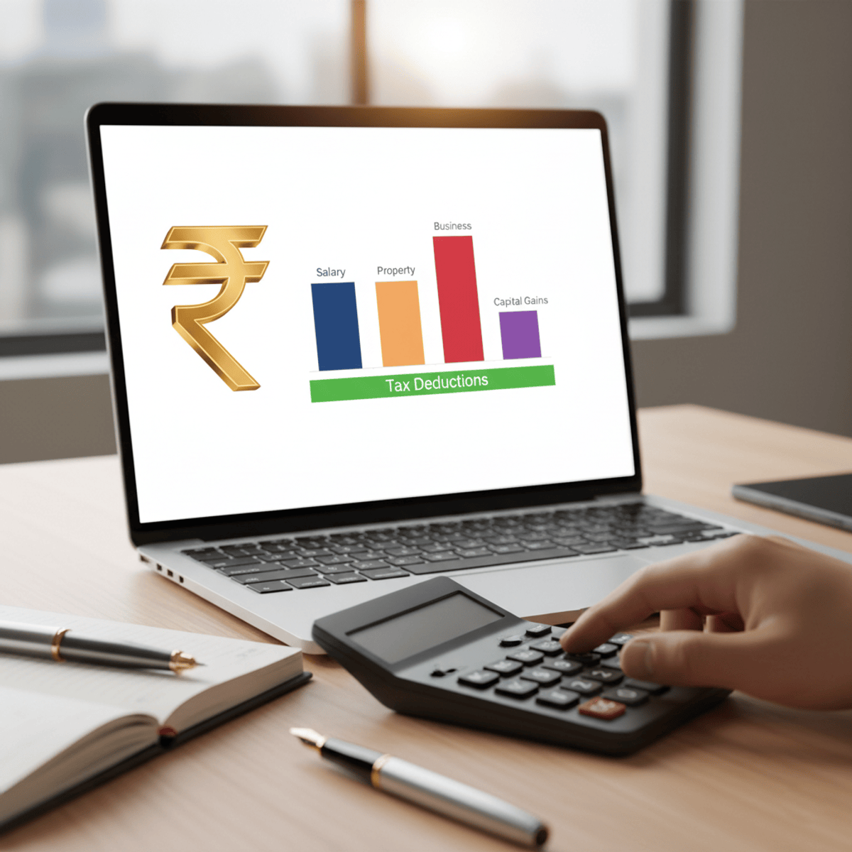 Compute taxable income across salary, business, capital gains, and other sources.